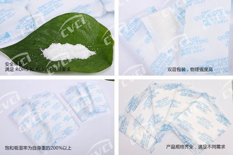 速效干燥劑是以高效活性吸附物為原料,經(jīng)精確計算,科學調(diào)配后組成。包裝采用杜邦紙與高級無紡布雙層包裝,印刷精美,使用方便。該產(chǎn)品規(guī)格齊全,可滿足不同產(chǎn)品的防潮、防銹包裝需求。