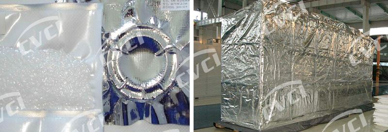 采用該產(chǎn)品包裝金屬制品后,可有效阻隔外界氧氣、水蒸氣、腐蝕性氣體、灰塵、陽光等進入包裝空間。在密封條件下可有效防止金屬銹蝕,并減緩橡膠、塑料等非金屬材料的老化變質(zhì),用于各種器材除氧、干燥、真空封存包裝,特別適用于電子、光學、儀表等精密器材的長期封存;也可用于大型設備、發(fā)動機、齒輪箱等大件器材的封套封存。